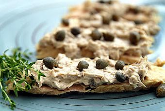 Scolare i filetti di tonno dall’olio in eccesso e sistemarli nei piatti, quindi coprirli con la salsa al bollito, aggiungere quindi sopra i capperi rimanenti (vedi foto sopra), decorare quindi il piatto con alcuni rametti di timo.