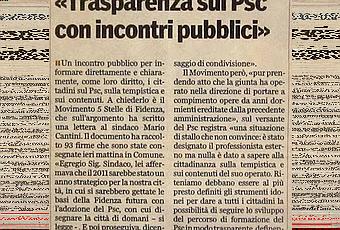 La lettera sostanzialmente chiede qualcosa che non è in contrasto col programma elettorale dei partiti che proponevano Mario Cantini candidato Sindaco e non è parimenti in contrasto con le linee programmatiche della presente amministrazione. La lettera semplicemente dice che è giunta l'ora per dare ai cittadini adeguata informazione su come si intende procedere nel ridisegnare la città nel futuro, futuro che sta rapidamente diventando presente. Non basta quindi a questo punto procedere a realizzare quanto lasciato in sospeso dalle passate amministrazioni. Procedere con questa scelta, che di scelta si tratta, senza farne intravedere la fine rende dubbia la reale volontà della presente amministrazione a cambiare veramente le cose. Il documento non entra giustamente nelle esemplificazioni ma alcune situazioni ci sembra si possibili segnalarle: ricordiamo il caso del Nuovo Solari e quella del sottopasso in Via Mascagni. Sono scelte che possono e devono essere discusse. Sono solo due esempi ma se il piano urbanistico di Fidenza deve essere dei fidentini e non più, come quello precedente, formulato da presenti e futuri "soggetti attuatori" diventa necessario che richieste come questa del Movimento 5 Stelle siano attentamente valutate.