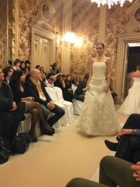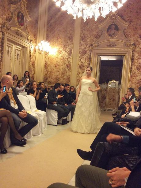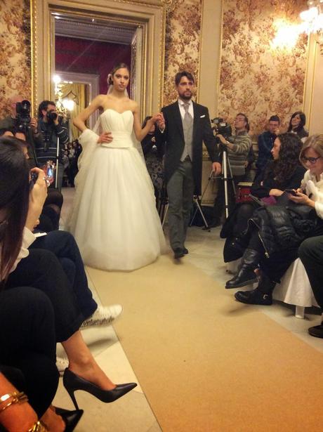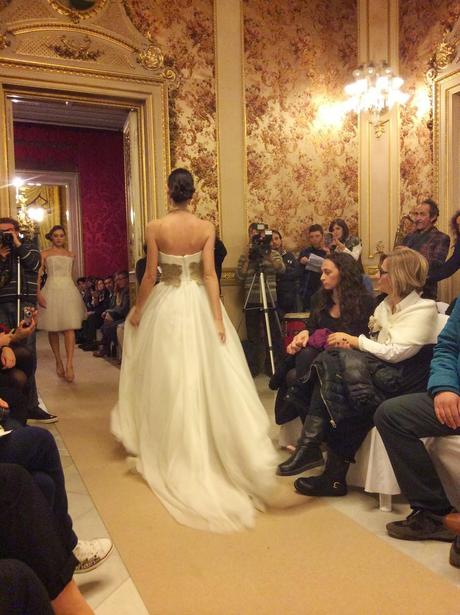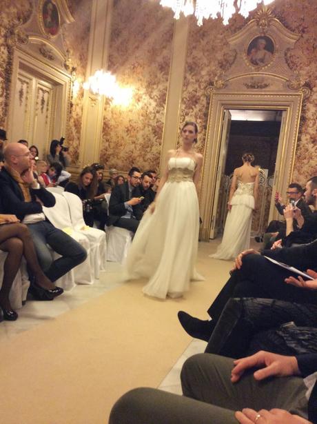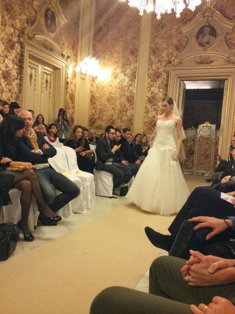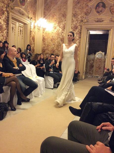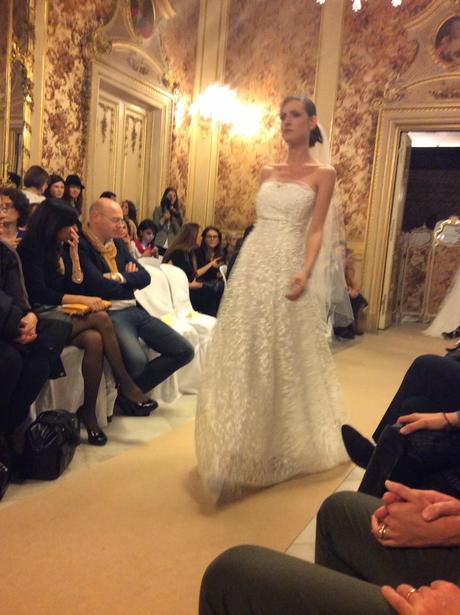 Ho trascorso l'ultima settimana rinchiusa in casa tra febbre alta e crampi all'addome. E tra un vaneggiamento e l'altro, sommersa dai miei fazzolettini, fidati compagni in queste grigie e fredde giornate, il mio unico pensiero era rivolto ad un evento. Lo aspettavo da tanto, con quella impazienza che provano i bambini dinnanzi ad un regalo da scartare: non vedono l'ora di poter scoprire cosa si cela dietro quelle scatole scintillanti che promettono magie. Allo stesso modo io attendevo con ansia che arrivasse il 2 Febbraio per poter assistere alla mia prima sfilata di haute couture e abiti da sposa. E non potevo certo permettere ad una maledettissima "febbricciola" di mettermi i bastoni tra le ruote.Ho un animo romantico e sogno che arrivi quel giorno da tempo immemore. Fantastico su come sarà il mio abito da sposa, ridisegnandolo nella mia mente ogni volta: un giorno sento che il pizzo macramè sarà quello giusto, un altro invece voglio strati di tulle ad avvolgermi.