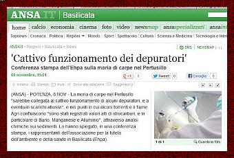La moria di carpe nel Pertusillo ''sarebbe collegata al cattivo funzionamento di alcuni depuratori, e a eventuali scarichi abusivi'',(...) ''sono stati registrati valori alti di idrocarburi, e in particolare di Bario, Manganese e Alluminio''