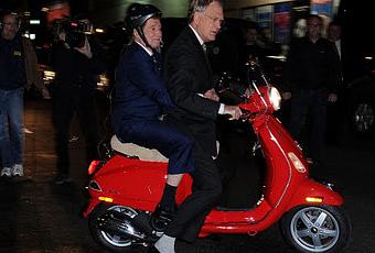 David Letterman credeva di essere Gregory Peck in Vacanze Romane e si è messo il collega Regis Philbin a cavalcioni sulla vespa, come fosse la sua Audrey Hepburn. Purtroppo di romane abbiamo visto solo le rovine, quando sono caduti per terra. Alla letterman.