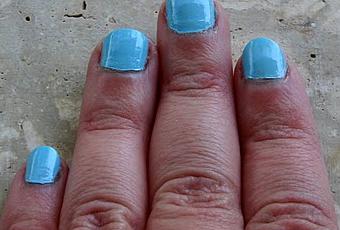 Ho rinvenuto nei meandri del pc queste foto scattate prima dell'estate (si nota delle mani cicciotte/bianchicce e dalle unghie super corte), con questo Debbie ColorPlay n. 107. Azzurro bebé, steso alla cavolo. Sono gli stessi Debbie di cui la mia amica Anna dice "Debby mi manderà in malora 4.40 euro alla volta, fan colori troppo belli e coprenti". E c'ha ragione, c'ha.