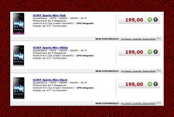 Sony ha finalmente annunciato l’arrivo nei prossimi giorni nel nostro paese del Sony Xperia Miro. Questo terminale sarà disponibile nei prossimi giorni in tre diverse colorazioni: Black, white e pink e sarà venduto a 199€. Sinceramente noi speravamo in un prezzo di listino più basso considerando che il Sony Xperia U viene venduto tra i 169 e i 199€ e presenta una dotazione hardware sicuramente più valida.