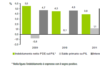 Sostegno all’attività economica e redistribuzione degli oneri della spesa pubblica tra le diverse generazioni: queste sono solo alcune delle funzioni che la teoria economica attribuisce al debito statale. Eppure esagerare con il debito è controproducente e oggi gli italiani ne pagano il prezzo, per almeno tre ragioni. 1) Innanzitutto indebitarsi costa. Ogni anno, infatti, lo Stato deve corrispondere interessi passivi ai sottoscrittori del debito: nel 2012, per esempio, l’Italia ha speso il 5,5% del Pil (oltre 86 miliardi di euro) soltanto per pagare gli interessi ai suoi debitori, cioè cinque volte quanto ha investito in ricerca. Ciò genera un circolo vizioso per le nostre finanze pubbliche: infatti, sempre nel 2012, se non ci fosse stata la spesa per interessi da fronteggiare, lo Stato italiano avrebbe registrato un avanzo del 2,5%. Ecco dunque come i deficit accumulati, una volta trasformatisi in debito, continuano a pesare sui nostri conti attuali e futuri. Si veda il seguente grafico Istat, relativo agli ultimi 4 anni, dal quale emerge che anche dal 2009 a oggi, cioè negli anni della crisi, il rapporto deficit/pil (in verde) è stato trascinato in terreno negativo dal peso degli interessi sul debito (grigio scuro):