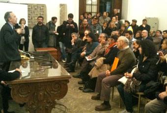 La “massima allerta” per le delibere urbanistiche lanciata qualche giorno fa da Carteinregola, che dal primo dicembre, insieme ai comitati di NO a Roma Capitale del cemento presidia tutte le sedute dell’Assemblea Capitolina, è stata raccolta dall’urbanista Paolo Berdini e dai molti comitati cittadini che ieri, lunedì 25 marzo, si sono dati appuntamento in Campidoglio. Il Consiglio non è poi stato aperto per la mancanza del numero legale (come ormai succede da tempo) ed è stata rimandato ad oggi in seconda convocazione. Così è stata improvvisata un’assemblea nella sala del Carroccio, a cui hanno partecipato anche il candidato sindaco del Movimento Cinquestelle Marcello De Vito, insieme a un gruppo di militanti del movimento, che da tempo segue le sedute capitoline. Si sono succeduti vari interventi con il comune denominatore di intensificare l’impegno contro le Delibere, che in queste ultime settimane di consiliatura potrebbero essere approvate ricorrendo alla seconda convocazione, quindi anche con soli 11 voti favorevoli.