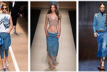 Oltretutto il denim in versione 2015 non si porta più soltanto in versione street e urban bensì anche in modalità sofisticata e chic: via libera ai completi giacca e pantalone dallo stile metropolitano, cinquetasche preziosi in lurex e salopette in versione rivisitata, ma anche abiti femminili, gonne midi e bon ton o stampate, e total look esattamente come si faceva tra gli ’80 e i ’90.
