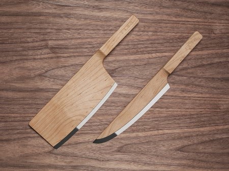 Set di coltelli Maple, dello studio canadese The Federalrealizzati in legno d'acero e lama in metallo lucidato.