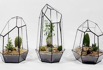 I terrari sono realizzati in vetro e con la saldatura senza piombo. Ogni pezzo viene fornito con il proprio corredo di rocce, sabbia, carbone attivo e un cristallo di quarzo.