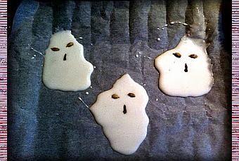 Due ricettine semplici semplici da fare insieme in un pomeriggio freddo e uggioso come questo...i termosifoni non sono ancora accesi..e possiamo tenere acceso il forno anche un bel po' per fare un po' di calduccio in casa. Con questi dolcetti veloci abbiamo passato un po' di tempo, ci siamo divertite e abbiamo creato quell'atmosfera che fa tanto Halloween e autunno...e che scalda anche il cuore e il palato.Pochi ingredienti per i fantasmini: 100 gr di albumi, un pizzico di sale e 150 gr di zucchero, abbiamo montato e steso nella carta da forma dando le sembianze di fantasmini, poi qualche spezia (due semini di cardamomo per gli occhi e un chiodo di garofano per il naso) e nel forno a 60°C per tre orette...eh sì sono tante ma le meringhe si sa impiegano tanto.. e poi per i pipistrellini di cacao li abbiamo preparati grazie ad un template cercato sul web e ritagliato poi dal cartoncino, abbiamo preparato una semplice frolla al cacao.Per questi biscottini potete fare anche la variante alla zucca mettendo invece del cacao 40 gr di confettura di zucca, qui vi avevo spiegato la ricetta! Non sono paurosamente fantastici? Magazine Maternità