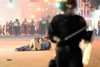 La foto del bacio durante gli scontri di Vancouver è secondo me l'immagine di cronaca più bella scattata durante questi dodici mesi. Vi si trova di tutto in una commistione tra paure intime e contesto storico che si intrecciano alla perfezione come solo uno scatto fotografico può fare.
