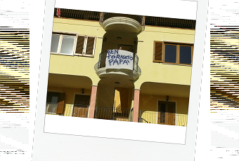E dopo un ora di macchina… a casa, quando Roby ha visto lo striscione si è di nuovo emozionato, e anche noi; e quando poi ha aperto la porta di casa e ha acceso la luce: sorpresa!Gli amici di una vita erano li, a festeggiare, a festeggiarlo!