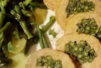 Ingredienti:Una vaschetta di petto di pollo macinato (400g)Due patate di media grandezza lesse e passate allo schiacciapatateUna confezione di fagiolini congelati lessatiAcquaAceto balsamicoOlio extrav. OlivaSpezie varie