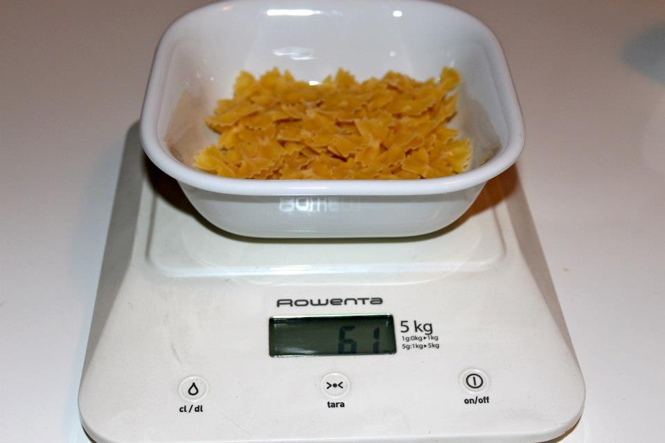60 gr di pasta, consigliamo quella piccola perchè da la sensazione di mangiare di più!! :)60gr of small pasta!