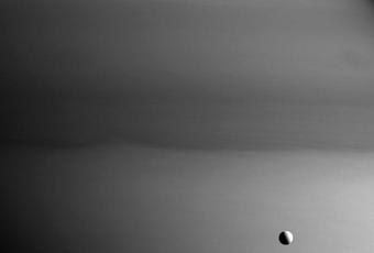 Il contrasto è forte ma non è una scarsa capacità di mettere a fuoco i due soggetti distanti tra loro, tecnica che entrò nella cinematografia con Orson Wells ne Il terzo uomo, piuttosto è il metano che caratterizza l’atmosfera di Saturno che crea il contrasto con la nitidezza del suo satellite Dione.