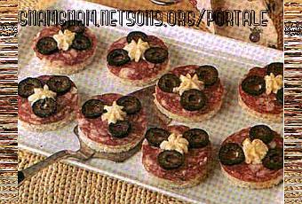 - Sopra ogni dischetto mettetevi le olive e la maionese come nella foto o come preferite.