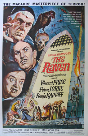 Spesso vado a rivedere la mia collezione di DVD...Vincent Price è assolutamente bravissimo in compagnia di Boris Karloff, Jack Nicholson (talentuoso già dai primi esordi)e un ironico Peter Lorre in "I maghi del terrore" anche se in inglese il titolo originale è "The raven"..oh! Che coincidenza!