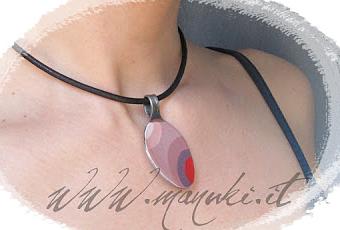 Per indossarlo ho optato per un cordino grosso sul quale ho montato una chiusura a calamita. Come vi sembra il risultato? Io ne sono piuttosto soddisfatta ed oggi l'ho indossata tutto il giorno. Ne sto preparando anche altre con disegni simili ma sul verde e vorrei trovare il modo di metterne più di uno sullo stesso cordino senza che diventi troppo kitsch... Suggerimenti per le decorazioni possibili? Spero come al solito che questo post sia d'ispirazione a qualcuna di voi! Da idea nasce idea... A presto!