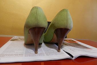 Ho colorato tacco e una parte della suola con un colorante fucsia (per tessuti, avevo quello e in effetti non è il massimo, sicuramente meglio una vernice!)