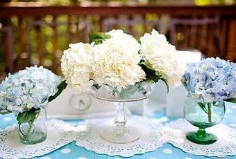Per me la miglior combinazione è fatta di doilies, ortensie e alzate!Non sono un concentrato di romanticismo??Come in queste nozze, di cui vi mostro le immagini. Ortensie in vasi vintage e alzate di cristallo e i doilies...