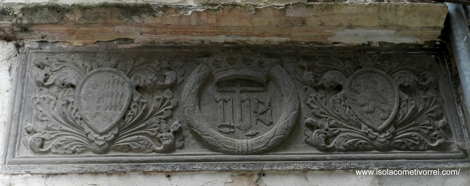 Questo sovraporta si trova a Dolceacqua in via Barberis Colomba, la via è l'antica strada carrozzabile e si trova nella parte abitata chiamata Borgo. In questi ultimi periodi sono attratta da particolari che caratterizzano i nostri borghi, le pietre e l'ardesia. Camminare nei carugi senza essere attratta dai giochi di pietre è quasi impossibile come lo è per il turista che visita questi luoghi. Tornando al capolavoro in ardesia fotografato, vi posso dire che mi sono rivolta ad un esperto per avere notizie, Franck Vigliani il quale mi ha scritto quanto segue:Ciao RobertaQuesto è un pezzo forte di eccezionale fattura. È assolutamente in ardesia, andrebbe restaurato per ritrovare il suo colore più scuro tipico dell'ardesia. È della prima metà 500. A sinistra lo stemma è quello Doria Grimaldi. Quello di destra purtroppo non l'ho identificato. Stemma di alleanza con i Doria?. Per un periodo è stata la casa di un certo Lorenzo Verrando che ha fatto incidere il suo nome in basso. La casa è stata per molti secoli quella dei Noaro.