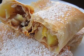 Per chiudere gli strudel spennellate con il burro in modo che la pasta fillo si attacchi bene.