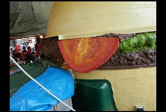 E… dulcis in fundo, ecco le mostruosità contemporanee che dovrebbero allietare i cittadini e i turisti. Colori e sapori in forme stravaganti e simpatiche. Tra hamburger di frutta su tre ruote, ragni giganti che proteggono auto di ultimo modello, cavallini sonanti, erba sintetica e coni gelato giganti… la nostra città è la Capitale mondiale della new pop-sub-art!