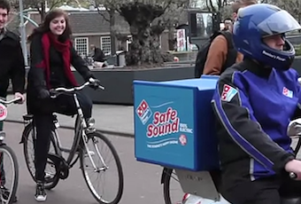 Nella green Olanda, dove ci sono più bici che ciclisti, i motorini elettrici (EV) possono circolare sulle piste ciclabili. Domino’s Pizza ha da sempre usato questo tipo di mezzo per garantire la consegna del proprio prodotto, fornendo anche un tempo massimo dopo il quale si può chiedere un rimborso. Un inconveniente riscontrato per gli EV, sia dai ciclisti che dai pedoni, è che sono molto silenziosi. Il “pizzaiolo” più noto all’estero ha deciso di risolvere il problema con creatività, ma soprattuto astuzia. Un riproduttore umano di rumore, con annesso mini spot. Esilarate e tanto buzz.