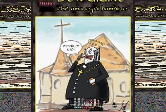 Così, quasi per caso nasce Don Gigino, la sua creazione, il suo contributo irragionevole alla “ragionevolezza” dominante. Don Gigino è un prete bambino, bambino cattivo che abusa di altri bambini, bambino egoista che interpreta la realtà soltanto in base ai propri bisogni preoccupato solo del suo “stile” di vita, della conservazione della sua rendita di posizione consolidata attraverso un lungo cammino fatto di intermediazione politica e clientelare.