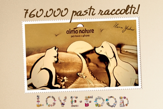questa ha visto la partecipazione di moltissime persone. Ben 760.000 pasti donati ai nostri amici a 4 zampe! La Love Food rinnova il suo appuntamento di anno in anno ponendosi l'obiettivo di aiutare i cani e i gatti che popolano i rifugi italiani. Ma non cè bisogno di aspettare la prossima LOVE FOOD per aiutare i nostri amici! Qui nel sito AlmoNature trovate tutte le azioni love di Almo, oppure perchè non portare un pò di pappa e di amore a questi cuccioli un sabato pomeriggio? Passereste una giornata diversa ad aiutare i volontari e a rendervi conto di quanti cuccioli bisognosi ci siano, soprattutto molti abbandonati in questo periodo perchè "scomodi" causa ferie !!!! Non apro un dibattito su questo argomento perchè tergiverserei troppo..
