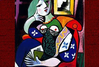 Non ci si aspetterebbe dall'arte contemporanea di riuscire a cogliere un momento importante come la lettura. E invece possiamo guardare un quadro come quello in figura (Donna che legge - 1935) e cogliere l'essenza di quel momento catartico che leggere regala.Guardate la mano della donna: sembra fondersi con le pagine del libro, come se libro e lettrice diventassero un tutt'uno. Nonostante le forme che si rifanno al cubismo, si può cogliere l'atteggiamento della donna. È rilassata, poggiata al braccio. Il viso la mostrano persa nei suoi pensieri, probabilmente suscitati proprio dalla lettura. I fiori del vestito si richiamano quelli di Matisse. I colori vivaci collegano questo momento di intima lettura a un sentimento di vivacità, di forza, di entusiasmo. È un modo originale di rappresentare una lettrice, visto poche volte, una genialità che solo l'autore di questo dipinto poteva avere: il grande Picasso.