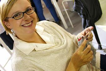 Il progetto che ho portato, come ormai ben sapete, è lo scialle Shashlik, da sferruzzare tutte insieme amabilmente.Ha riscosso davvero tanto successo, ne sono così contenta!Moltissimi si sono precipitati a comprare la lana più adatta a realizzarlo, mentre altri hanno approfittato dei filati che si trovavano nello stand per fare delle prove: hanno anche approfittato del fatto che c'ero io per togliersi dei dubbi riguardo alla realizzazione… abbiamo distribuito DECINE di schemi!