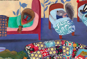 Letti che ad osservar bene, tradiscono il vero animo dei loro dormienti occupanti: il coccodrillo non usa i denti per difendersi dai brutti sogni, piuttosto s’accoccola abbracciando un orsetto e protegge e ospita una coppia di ranocchie con la sua coda; le foche monache ambiscono a lasciare la spiaggia preferendo accoccolarsi in poltrone colorate tra i rami di un albero; il gatto, in un armadio che è un mondo a parte, il suo mondo a parte, con tanto di cielo e panorama bucolico, non si separa dalla sua palla e sorride sornione, fedele a se stesso.