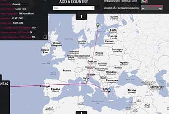 L’utente può personalizzare la ricerca per singolo paese o account e visualizzare i collegamenti tra diversi account. C’è anche una mappa mondiale completa di grafici per seguire i flussi dei tweet tra le diverse capitali.