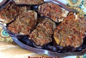 Ingredienti: 4 melanzane, 2 cucchiai di prezzemolo e aglio tritati, olio extravergine di oliva, parmigiano e primo sale grattugiati, pangrattato, 1 uovo intero e 1 tuorlo, olio extravergine di oliva.
