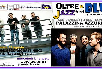 Giunta alla sua quarta edizione, la rassegna Oltre il Blu Jazz Fest anche quest'anno si distingue per l’attenzione verso le avanguardie e il contemporaneo proponendo ad un pubblico, il più eterogeneo possibile, selezionati gruppi di giovani jazzisti. Risultato di un'appassionata e continua attività di ricerca condotta da Manuela Angelini e Francesco Re di Note di Colore, il programma presenterà infatti, come nelle altre edizioni, due gruppi appartenenti al nuovo, prolifico e sempre più interessante panorama jazzistico italiano: il quartetto del chitarrista Francesco Diodati, (i Neko) e quello del pianista ascolano Emiliano D'Auria, (lo Jano Quartet) , prototipi del jazzista moderno, in grado di guardare al futuro attraverso l'intreccio incondizionato di generi e stili. In entrambe le serate verranno presentate produzioni originali, nella volontà di valorizzare la creatività e la voglia di sperimentare.Il primo appuntamento, fissato per sabato 17 agosto, vede protagonisti i Neko con Francesco Diodati chitarra, composizione; Gaetano Partipilo sax tenore, Francesco Ponticelli contrabbasso, basso elettrico; Ermanno Baron batteria. La formazione presenterà Need something strong nuovo cd per l'etichetta Auand Records, in cui il leader Francesco Diodati si cimenta con un repertorio di composizioni originali e di rivisitazioni di brani di Thelonious Monk e Kurt Cobain. La ricetta del successo di questa formazione nasce da un originale connubio di freschezza timbrico-melodica e libertà formale. I brani che prendono vita “dall’interazione continua tra scrittura e improvvisazione”, racconta Diodati, sono ricercati ma orecchiabili e denotano la matrice della ricerca espressiva del leader, in equilibrio tra aggressività rock, intuizioni avanguardistiche e atmosfere sognanti, in cui il “jazz è solo il punto di partenza” (La Repubblica).Protagonista del secondo appuntamento, mercoledì 21 agosto, è invece lo Jano Quartet con Gianluca Caporale, sax soprano/tenore e clarino; Emiliano D’Auria, piano e live electronics; Amin Zarrinchang, contrabbasso; Alex Paolini, batteria e live electronics. Le dinamiche concettuali del concerto ruotano intorno alla struttura del reportage, costruito utilizzando sonorità attuali, cercando di trasmettere una visione nuova e accattivante del Jazz. Lo spettacolo offrirà brani originali, tratti dal secondo lavoro discografico, Distante (Via veneto Jazz, 2012). Dai dieci brani originali contenuti nell’album, emerge un jazz elettroacustico e modernamente “atmosferico”. L’utilizzo dell’elettronica, l’impianto delle composizioni, la scelta dei suoni, è tutto orientato a creare spazi e diversi piani sonori, a creare ambienti e aprire orizzonti. L’equilibrio di ruoli e il lirismo diffuso si colorano di timbri suggestivi. Il risultato è sospeso con misura tra nebbie di paesaggi incontaminati e sottili brividi da allucinazione metropolitana in cui le folate d’inquietudine, di attesa, di sospensione psichedelica, interagiscono per creare un sound disteso come le correnti d’alta quota, “distanti”, appunto, anche da accademismi e mode.La quarta edizione presenta poi una novità: la partecipazione della rivista letteraria UT che curerà dei reading pre-concerto: parole prima della musica. “Parole e musica o musica e parole. Il refrain è lo stesso ma il senso cambia se le parole introducono un festival Jazz. Si fanno scorrevoli o sincopate. A volo libero o seguendo un ritmo. Parole cadenzate. Parole che esprimono pensieri e sentimenti, forse qualche emozione. Il senso dei reading di Maria Teresa Urbanelli, Emanuele Feliziani, Alessandra Morelli e Enrica Loggi (collaboratori di UT), ad apertura delle due serate di Oltre il Blu, sta tutto nella strettissima correlazione fra la poesia e la musica perché, se la poesia rappresenta la musicalità delle parole, la musica è l'essenza della poesia. Partendo dal titolo del Festival, Oltre il Blu, UT si tuffa nella perdita d'occhio dell'infinito, nei meandri dell'eros, nella bellezza dei suoni, nei gangli vitali dell'amore. Facendo sintesi. Volando un po'”.Ad ospitare gli eventi sarà come sempre la suggestiva location della Palazzina Azzurra, teatro di numerosi concerti ed eventi dell'estate sambenedettese. In caso di pioggia i concerti si terranno presso l'Auditorium Comunale Tebaldini.L'evento è organizzato da NOTE DI COLORE con il contributo del Comune di San Benedetto del Tronto – Assessorato al Turismo, Cultura e Sport e con il patrocinio di Assoartisti dell'Adriatico.Inizio reading ore 21.20; inizio concerti ore 21.40 L'ingresso (una rarità) è liberoPS. Ma è solo un inciso: presento io...
