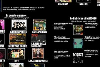 Ultimo numero estivo di MAT2020, come sempre carico di significati musicali. Terribile la notizia relativa alla prematura dipartita di Chris Squire, di cui si conosceva la recente malattia, ma il rapido epilogo non era davvero ipotizzabile. A lui è dedicata la cover di Valter Boati e un articolo di Damiano Premutico, alias Donald McHeyre. Largo spazio alle recensioni, con l’analisi di Athos Enrile degli album degli Spettri, Delirium, Camelias Garden, Merry Go Round e Barock Project, tutti rilasciati in un breve spazio temporale. La presentazione dei nuovi album prosegue con il Live Studio de Il Ballo delle Castagne, ascoltato da Gianni Sapia, e Quasi English di Lanzetti & Roversi, proposto da Alberto Sgarlato. Anche Franco Vassia contribuisce al commento delle novità in uscita, raccontandoci il doppio CD degli Osanna, Palepolitana. Ancora una volta l’angolo del fan è occupato da Roberto Attanasio che ci riporta al 17 maggio, al concerto che i Goblin Rebirth tennero al FIM di Genova. Un articolo particolare è quello che descrive, nella doppia lingua, la riproposizione del famoso Suite for Flute and Jazz Piano di Claude Bolling, riarrangiata da Steve Barta, in collaborazione con il pianista Jeffrey Biegel e il flautista Hubert Laws. Ancora McHeyre ci fa rivivere un momento “giovane” che ha visto protagonisti i JUST, di scena al CROSSRoads di Roma. Sempre ricche le rubriche “fisse”: il metal di Maurizio Mazzarella, il blues di Fabrizio Poggi, le perle nascoste di Riccardo Storti, i dischi della vita di Alberto Sgarlato (casualmente, nell’occasione, “Fragile”!), il viaggio di Mauro Selis nella musica progressiva meno conosciuta (prosegue l’indagine brasiliana) e l’attenzione per i risvolti psicologici che solo il Dott. Selis riesce ad abbinare alla musica. Il reportage fotografico è proposto da Francesco Pullè che con i suoi scatti ci racconta un concerto modenese di Ginger Baker. Il versante live è arricchito dal resoconto del concerto tenuto da Patti Smith il 31 luglio a Santo Stefano di Magra (SP), realizzato da Angelo De Negri, con reportage fotografico di Dimitri Magnanini. Una new proiettata nel mese di settembre ci presenta il Festival Prog Rock Torino.