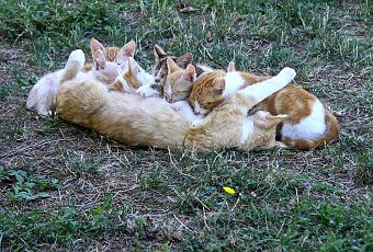 Mirò, al secondo parto di questo anno, in luglio, ha partorito 3 gattini. Da qualche giorno si sono assentate la sorella Juanita, che sempre in luglio ha partorito 5 gattini, e Giulietta, che dei 3 gattini partoriti in maggio gli è restato un solo maschietto.
