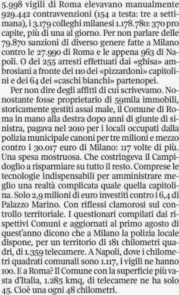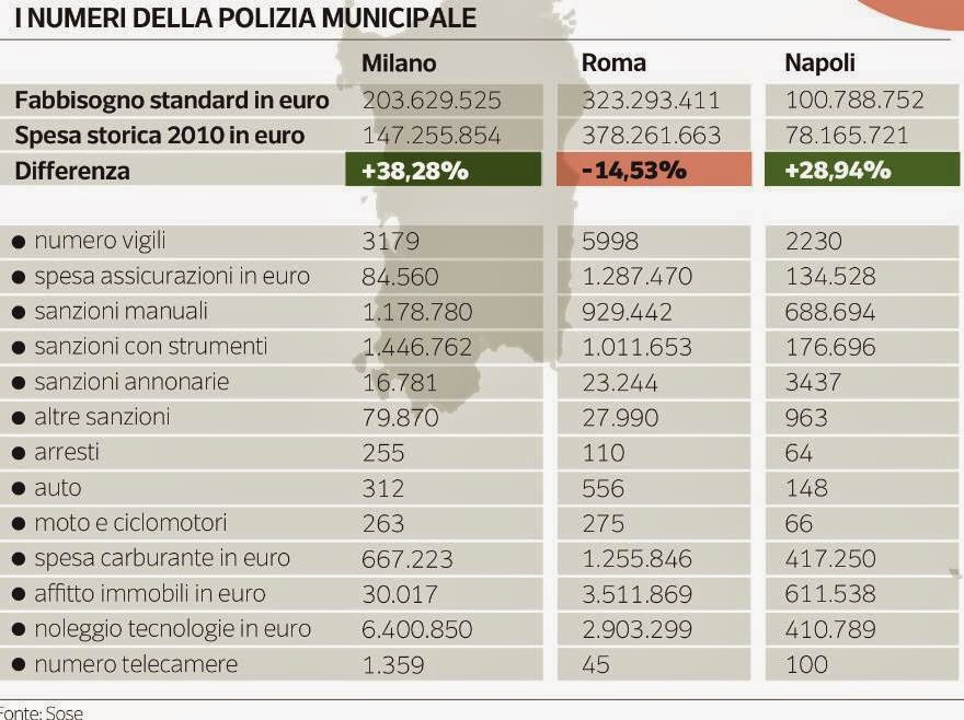 Ebbene le prime elaborazioni del Corriere si sono abbattute, guardaunpò, sulla Polizia Locale. Con un clamoroso confronto Milano\Roma\Napoli. Alcuni dati - e alcune riflessioni - come queste qua sotto le conoscevamo già. Ma leggerle rappresentate su grafici e in due paginone in cronaca nazionale sul principale giornale del paese fa sempre il suo bell'effetto.