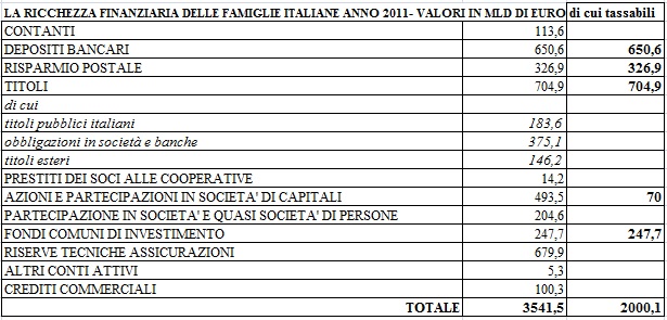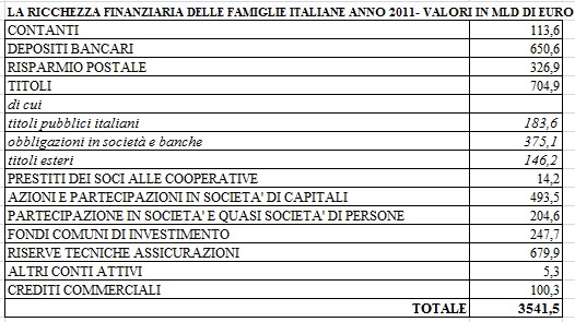 Veniamo, ora, alla ricchezza finanziaria quantificata in 3541 miliardi di euro,