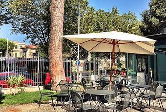 Un chiosco dall'architettura gradevole. Le seggiole all'aperto (in metallo, non in plastica). Gli ombrelloni. Dei prodotti di qualità (quella, comunque, sempre migliorabile) e poi tutto curato e tutto pulito. Perché? Ma semplice: per interesse! Evvivaddio. Perché più l'ambiente è curato e pulito e più l'esercente ha appeal, più guadagna, più incassa, più fattura (e dunque più paga tasse e più assume nuovo personale, che può essere un vantaggio per tutti anche per te che leggi e vivi dall'altra parte della città). E poi, così, c'è qualcuno che i parco lo presidia, segnala se ci sono anomalie, lo migliora ("stiamo cercando di attivare anche l'irrigazione" ci raccontano) e lo apre al mattino chiudendolo la sera.