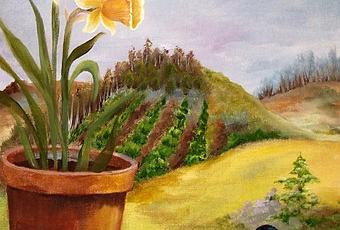 Mi piace un sacco questo paesaggio visto da un davanzale. E’ dipinto con i colori acrilici su tela. Mara Trumbo, insegnante d’arte, ci insegnerà a realizzarlo SABATO 19 MAGGIO a Biassono (MB). E’ un corso adatto anche per principianti: