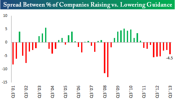 Coming into this earnings season, we had our eyes on two earnings-related streaks. The first was the 8-quarter streak of more companies lowering guidance than raising guidance. Unfortunately, the streak was extended to nine quarters this season, as companies lowering guidance outnumbered companies raising guidance by 4.5 percentage points. When will companies finally offer up positive outlooks on the future?