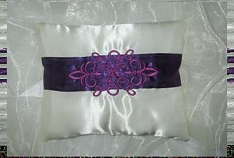 Ahhhhhhhhhh, finalmente ho finito il campionario cuscini portafedi / bomboniere. Ne mancava ancora uno, che ho fatto questa mattina, al volo. Con il corriere (non Bartolini...) alla porta. E' senza i nastri perchè non ne avevo di viola e volendo si può personalizzare con le cifre degli sposi.