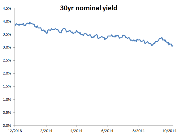 In particular, 30-year bond yields have dropped by nearly a full percentage point since tapering was first announced: