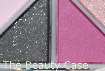 Quello che vedete nella foto è Glam, un set di quattro ombretti da mixare a piacere: rosa confetto (illuminante), nero glitter (contouring), fucsia (palpebra mobile) e oro rosa (arcata superiore). Questo, a lume di naso, ossia io li intendo così, dal più chiaro al più scuro, ma niente e nessuno vieta di usarli a coppia, come meglio vi pare e piace.