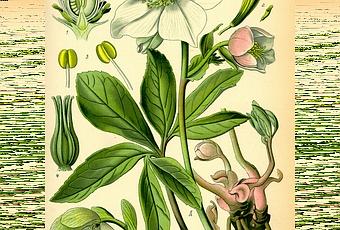Gli ellebori sono piante perenni rizomatose della famiglia delle ranuncolaceae. Ne esistono una trentina di specie, fra cui la più famosa è la rosa di Natale o Helleborus Niger. Originari dei paesi mediterranei, sono diffusi anche in Asia occidentale. I fiori dell’elleboro variano tra i toni del bianco, del rosa, del porpora, del rosso e del verde pallido. Sin dall’antichità la pianta dell’elleboro era nota per le sue proprietà allucinogene e i romani le attribuivano il potere di guarire dalla follia e dagli stati malinconici. Il suo nome viene dal greco ed è una parola composta: "elein" (che significa ferire) e "bora" (che significa cibo mortale); e infatti l’elleboro è una pianta molto tossica, nessuna parte della sua pianta può essere ingerita e sarebbe meglio manipolarla usando dei guanti.