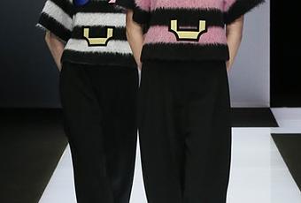 heels add feminine flair and lengthen the leg. Sparkle-galore lends a three-dimensional touch to evening wear. A sharply-cut wool broadcloth coat with a sequined plastron speaks of armani’s whole history – his signature blend of masculine and feminine.