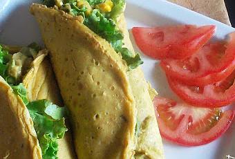 Una ricetta semplice, che io e Benna amiamo molto; si tratta di una sorta di piadina/crepes a base di farina di ceci, che fa bello chiamare ENCHILADAS, farcite in questo caso di insalata, mais, zucchine crude marinate e una deliziosa guacamole. Non pensate ci voglia tanto tempo per prepararle, al contrario, è l'ideale per le serate in cui non potete dedicare più di tanto alla cucina .INGREDIENTI x 2:x le enchiladas- 80 gr di farina di ceci- 40 gr di farina di farro (o farina normale)- 1 pizzico di sale- 1 pizzico di pepe- 1 pizzico di curry- 1 cucchiaino di cumino- 1 cucchiaio d'olio EVO- acqua q.b.