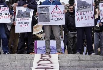 Estirpare tutti i cartelloni da Roma, la nostra missione. Una città civile non può utilizzare questa barbara, primitiva, degradante, cafonissima forma di pubblicità. La Città Eterna non può essere ridotta a una giungla, sfigurata da centinaia di migliaia di catafalchi abusivi. Ormai non esistono più paragoni per descrivere l'orrore, il raccapriccio, lo schifo, il cattivo gusto che abbiamo raggiunto. Nemmeno le città sudamericane, nemmeno l'Est Europa, nemmeno la Cina. La fogna, il buco del culo del mondo, siamo noi: ROMA. I cartelloni vanno estirpati tutti, uno per uno. E' una lotta contro la barbarie, civiltà contro inciviltà. Difendiamo Roma da questo schifo.