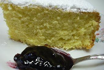 Per prima cosa ho montato a lungo le uova intere con lo zucchero fino a farle diventare chiare e spumose. Ho quindi aggiunto la scorza grattugiata ed il succo del limone, quindi il burro fuso freddo. Per ultima ho aggiunto la farina passata al setaccio ed unita al sale ed al bicarbonato versandone ed amalgamandone un pò per volta. Ho quindi versato in una tortiera da 24 cm imburrata ed infarinata e cotta per 45 minuti a 160°, facendo la prova stecchino.